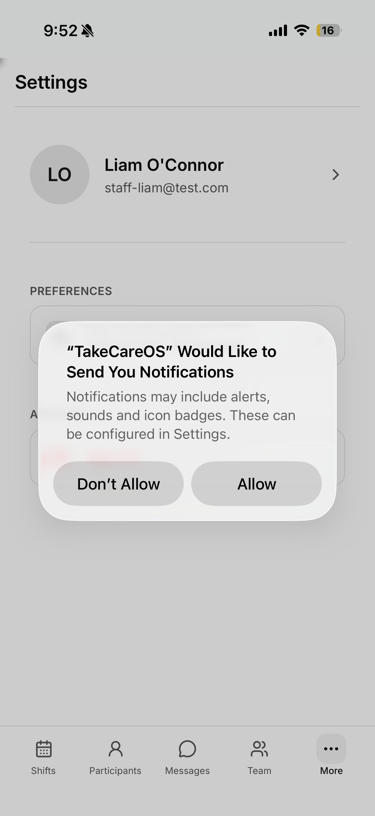 TakeCareOS is installed and ready to go. You'll receive notifications for shifts, messages, and alerts.